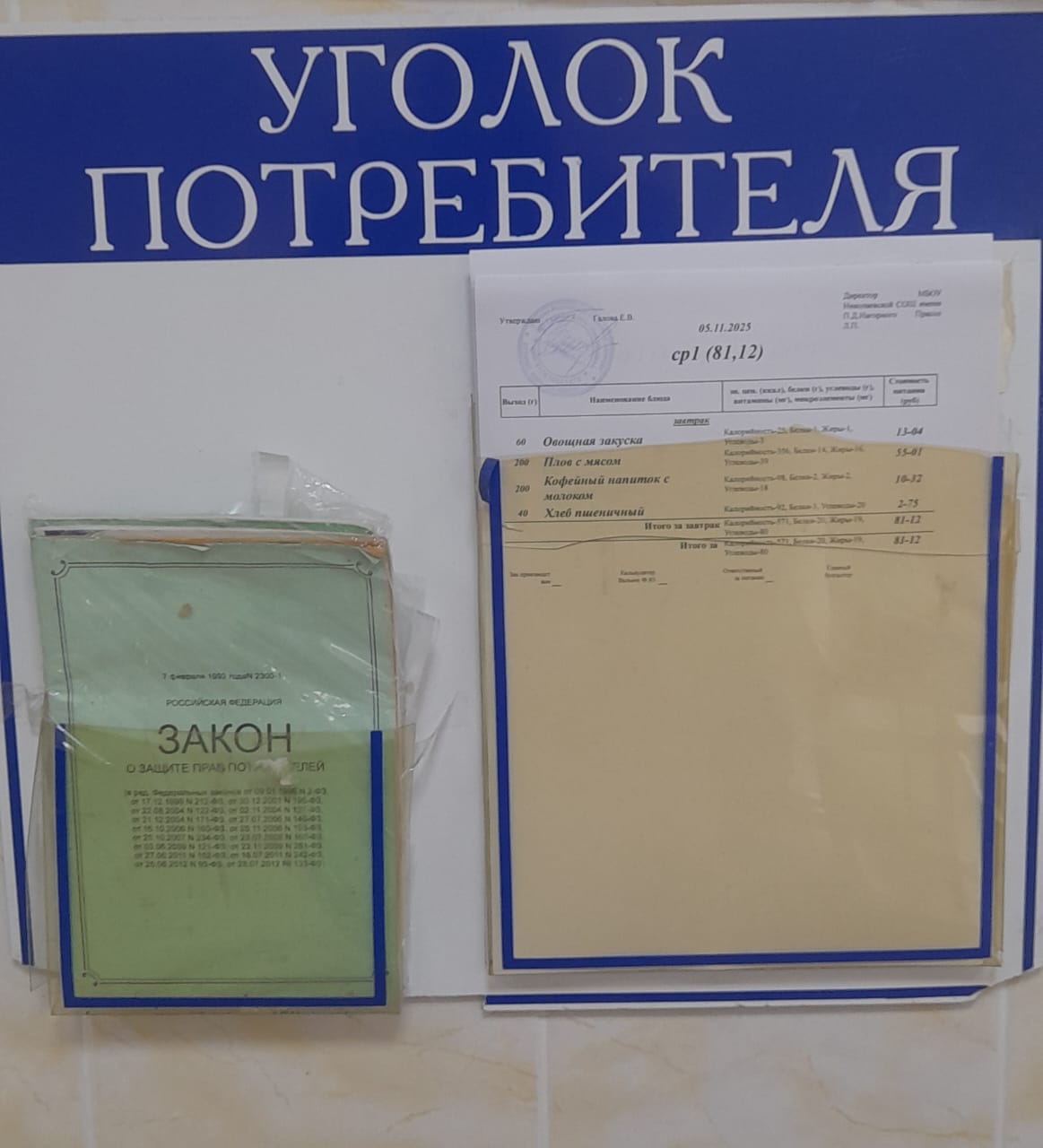 Перспективное 10-ти дневное меню для учащихся 1-4 классов Николаевской средней школы (завтраки)